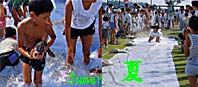 子供たちが水と戯れ、町中に盆踊り